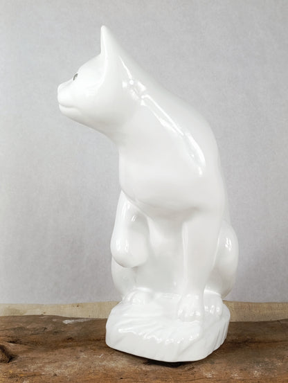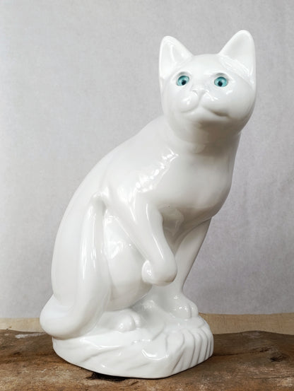 Este gato de porcelana no solo es una pieza decorativa, es un guardián silencioso que observa con sus ojos turquesa cada rincón de tu hogar. Fabricado por la marca Elpa en Portugal, evoca una época en la que los objetos estaban pensados para durar, y cada uno contaba una historia.