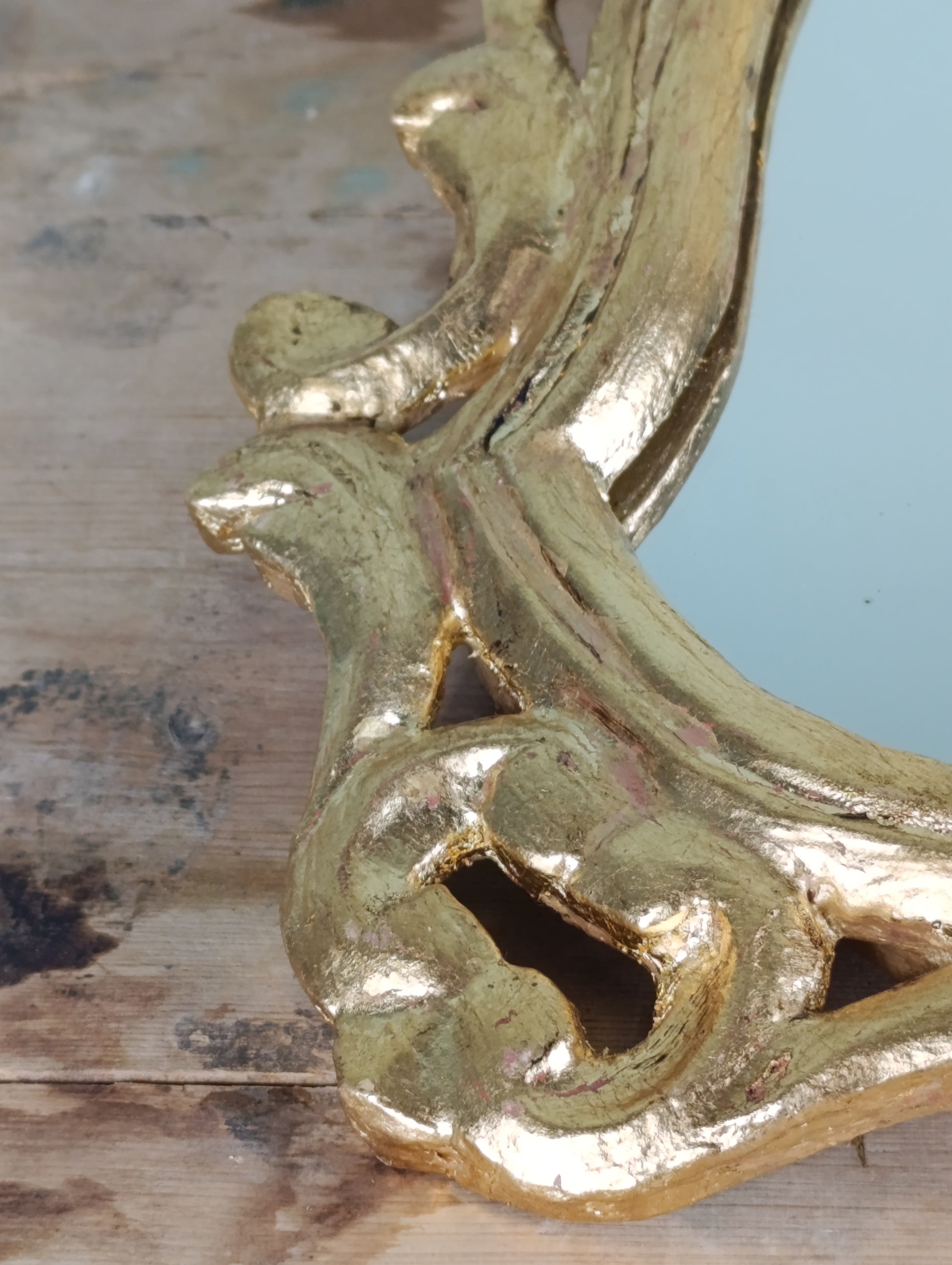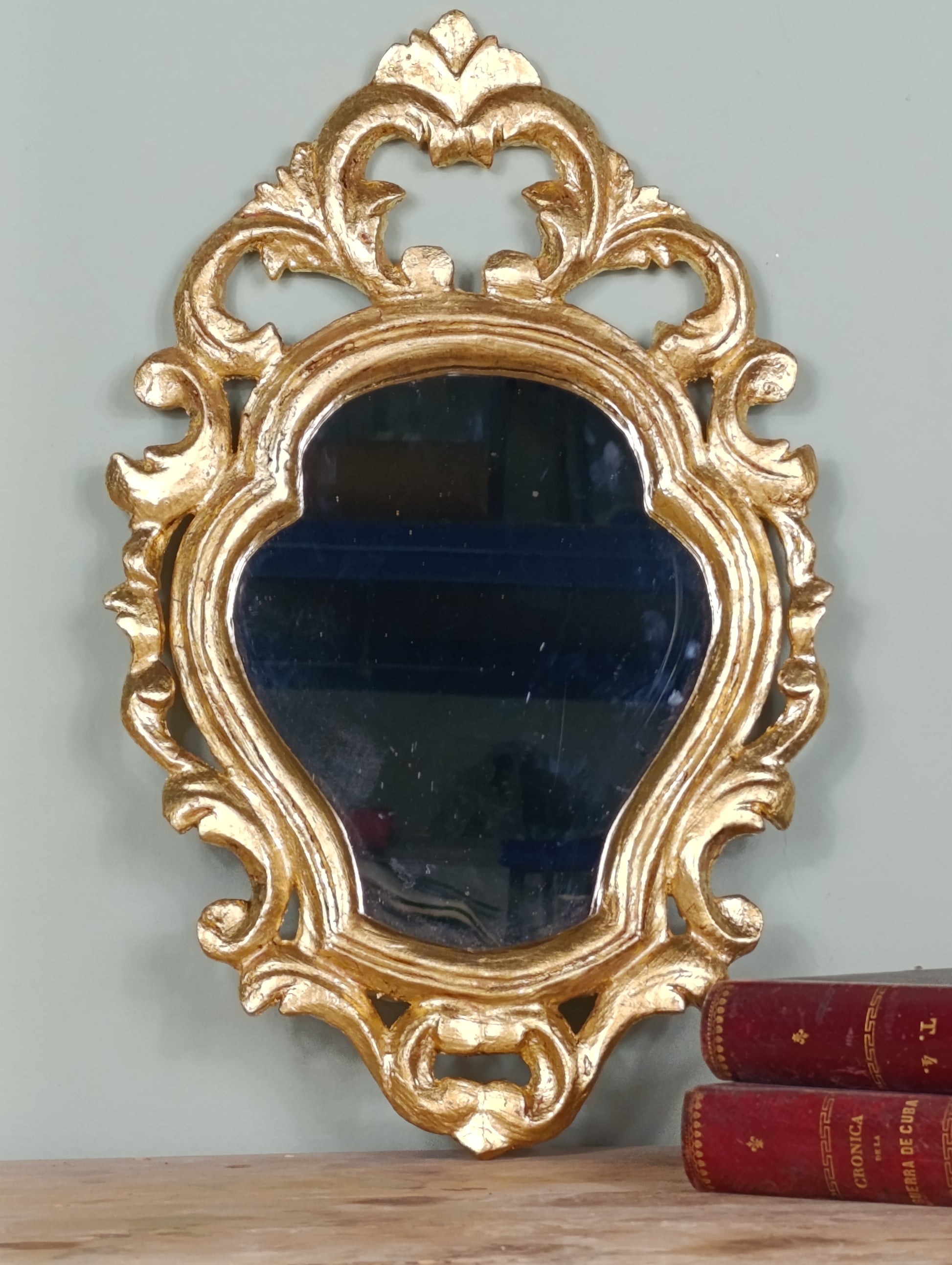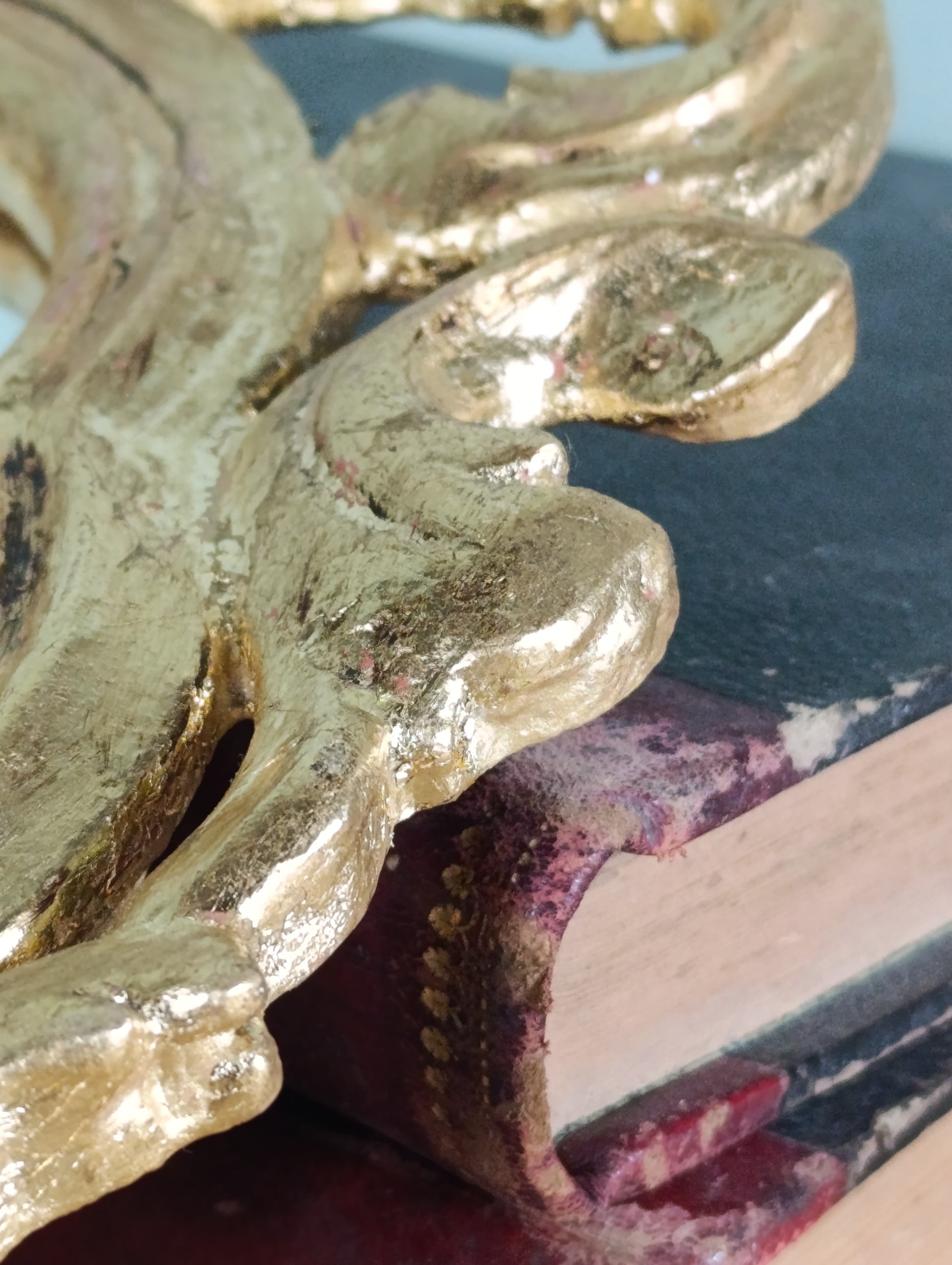 La cornucopia si bolo de elegancia, fue durante siglos un objeto presente en casas señoriales. Esta pieza de principios del siglo XX en madera dorada refleja el esplendor clásico, con su dorado cálido que recuerda los espejos de antaño y la luz de los salones antiguos. Perfecta para convertirse en protagonista en un salón o recibidor elegante.