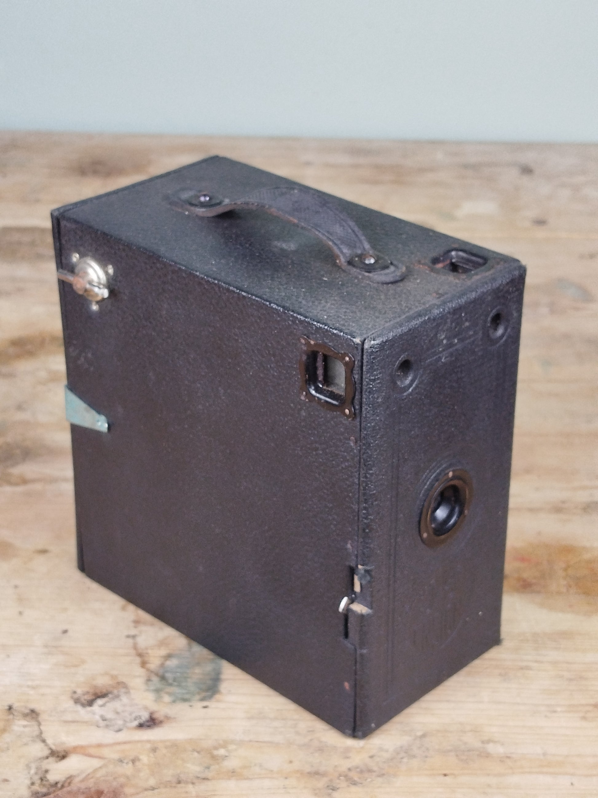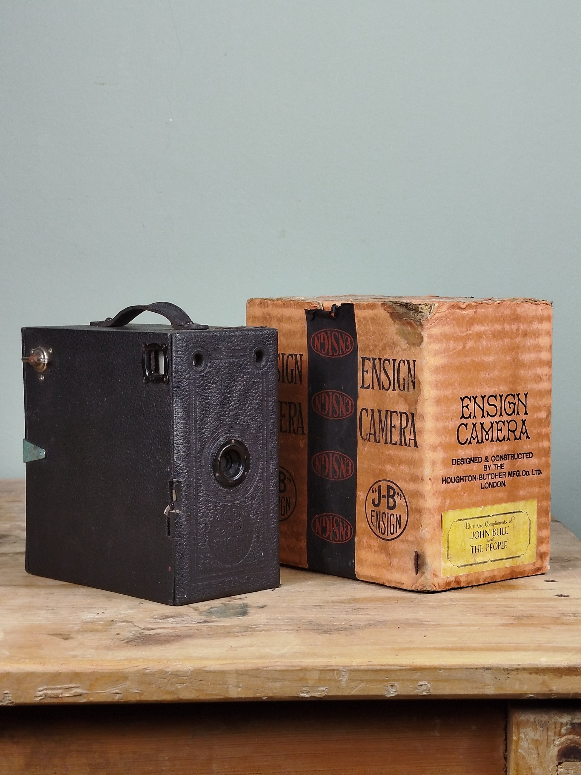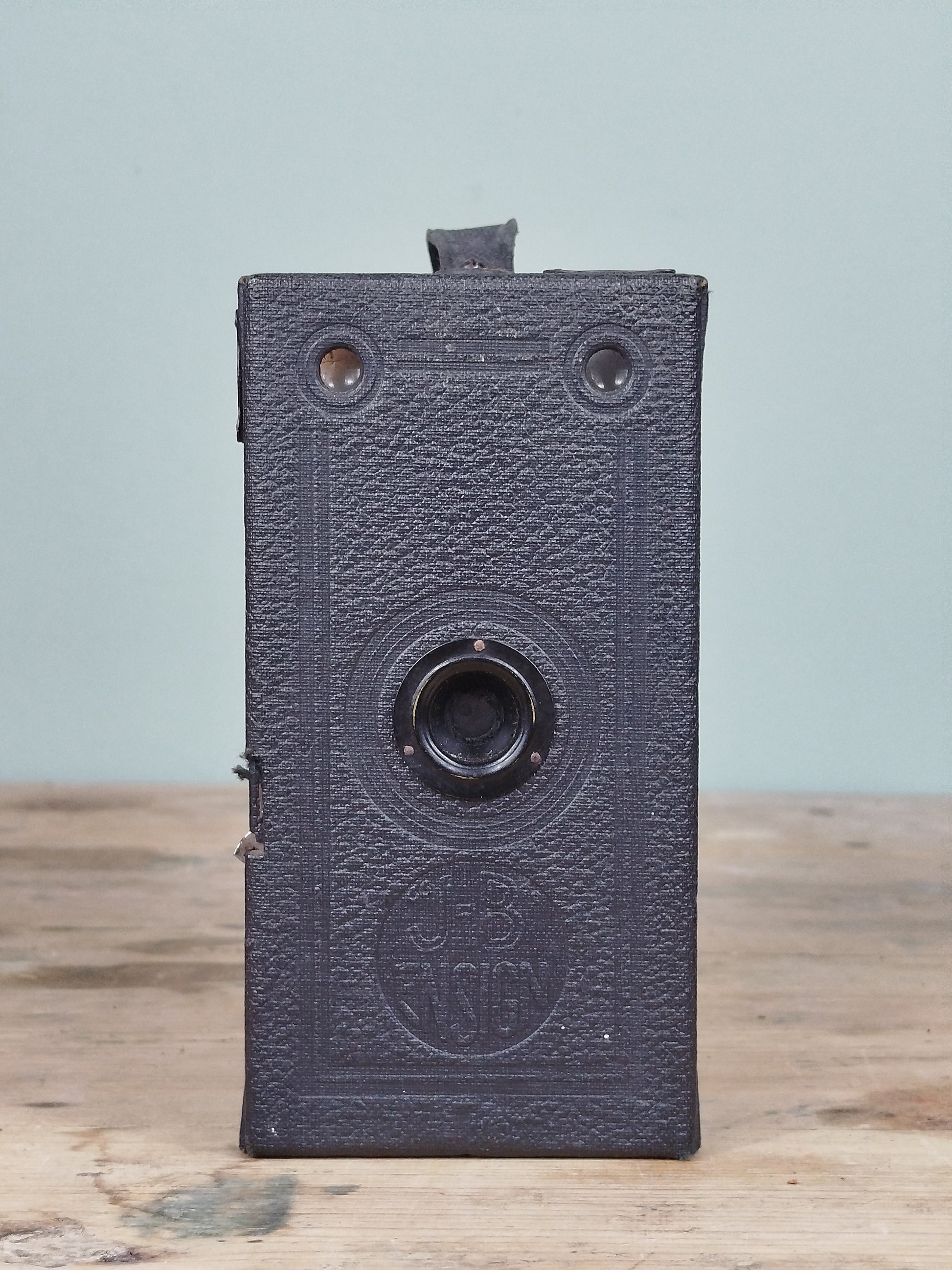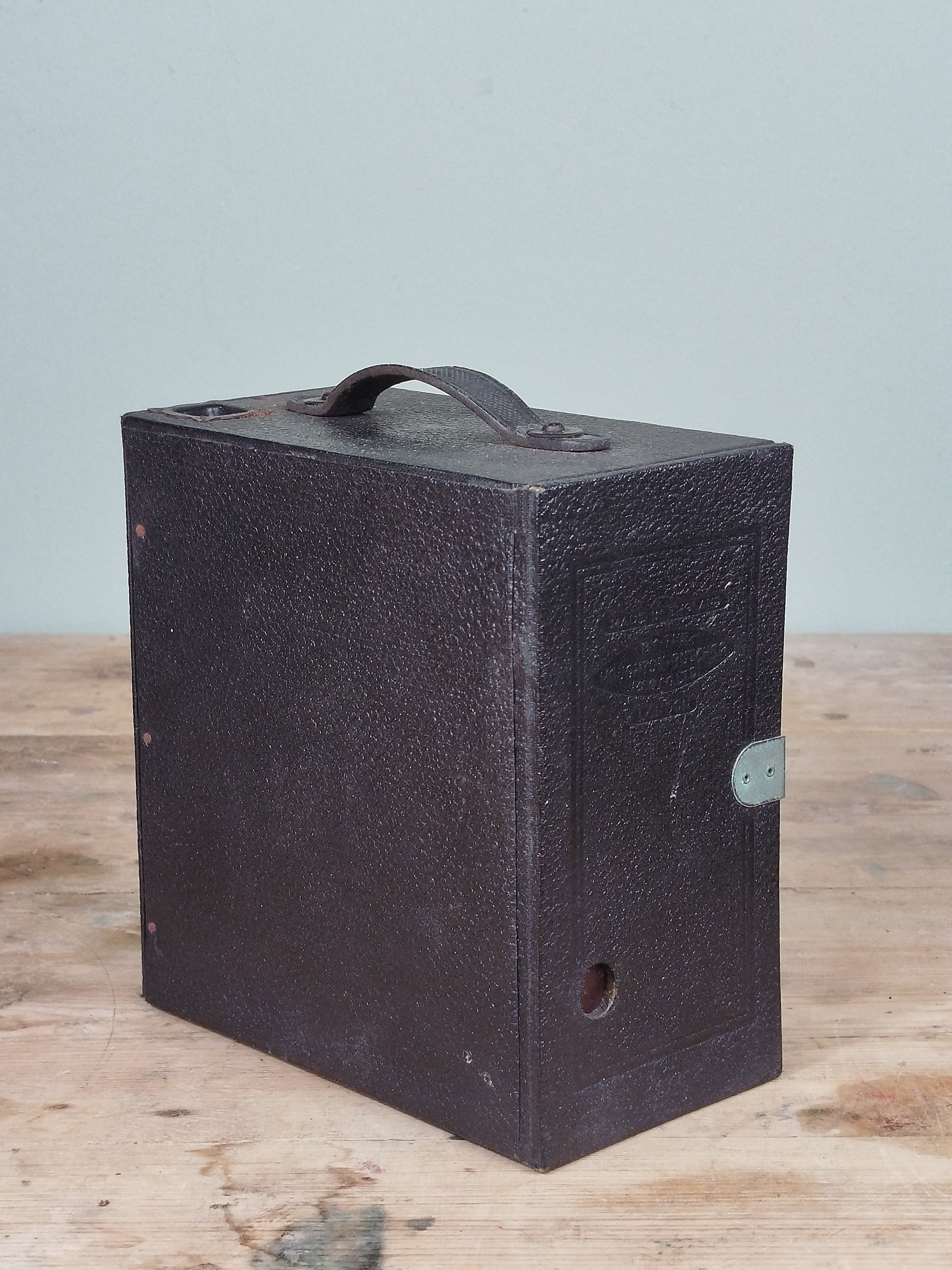 Con una estética encantadora, esta cámara de caja inglesa ofrece un equilibrio entre elegancia y funcionalidad. Fabricada con materiales nobles, como el cuero y el metal, guarda en su interior el misterio de miles de imágenes que una vez capturó. Sugerencia decorativa: Dimensiones: 17 x 10,5 x 16 cm
