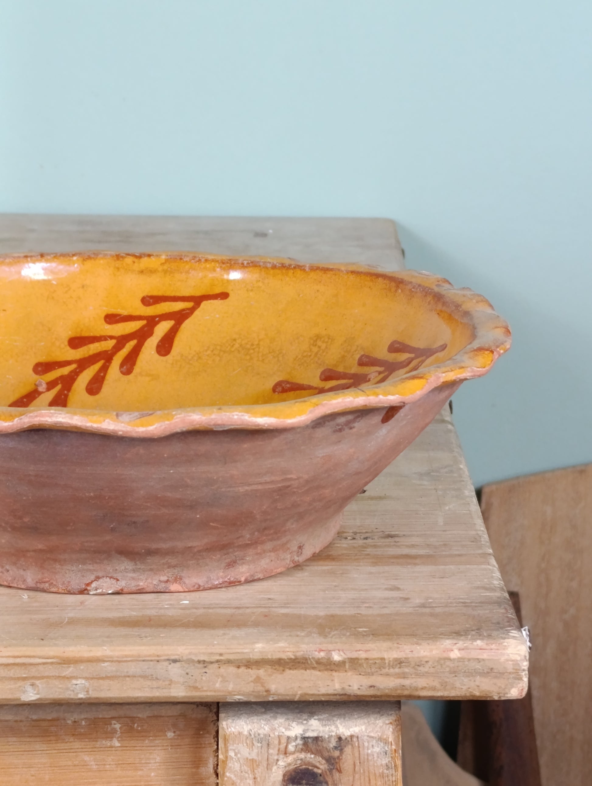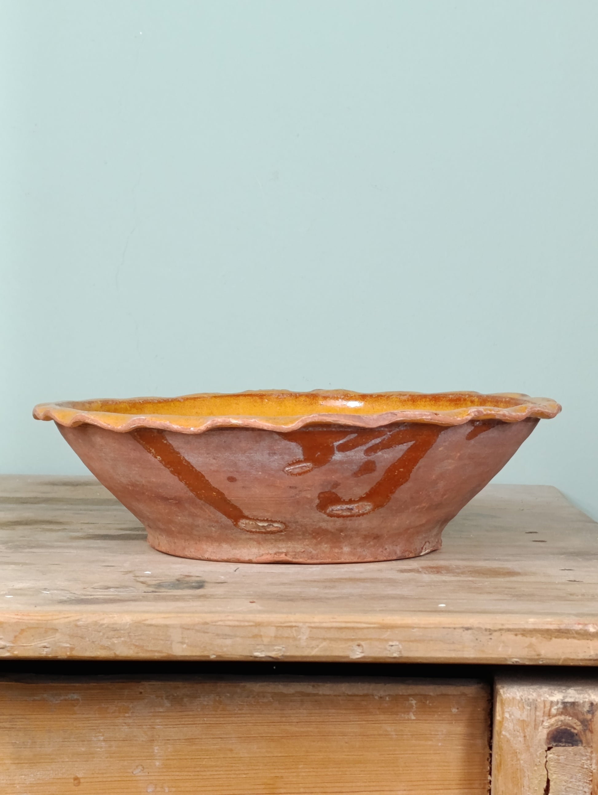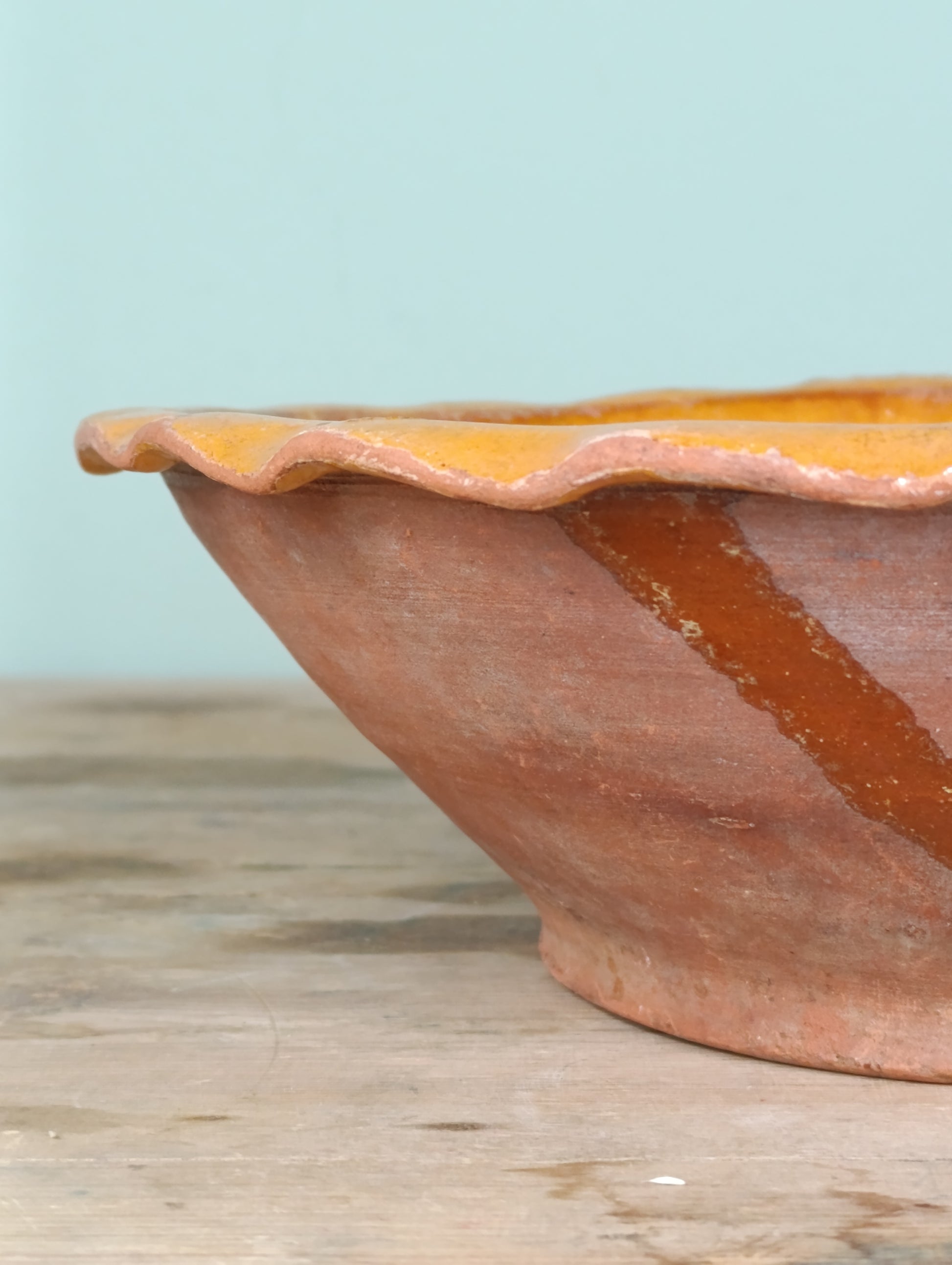 Los lebrillos eran recipientes indispensables en los hogares andaluces. Esta pieza de alfarería granadina, con interior esmaltado, muestra la sencillez y el arte de la tradición popular. Su diseño funcional y estético convierte este objeto en un guiño a las raíces mediterráneas. Ideal como centro de mesa con frutas, como fuente en una mesa rústica o para colgar en pared junto a otras piezas de alfarería.