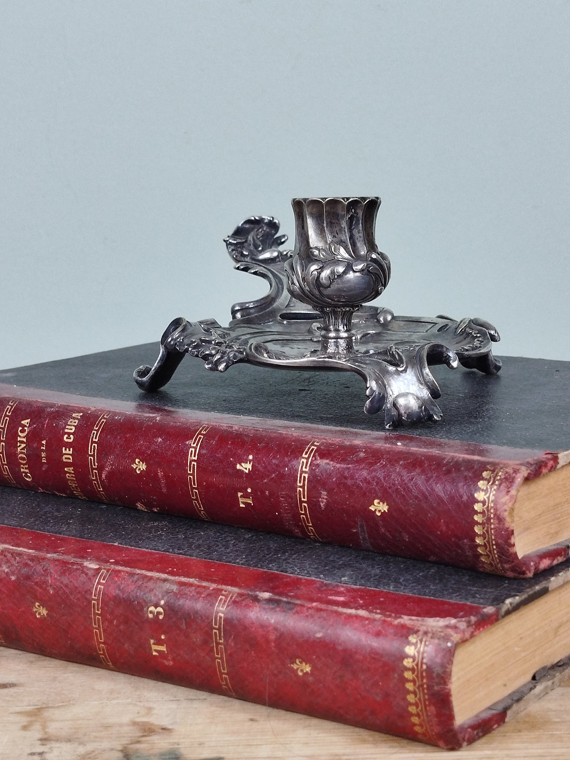 Palmatoria de bronce bañada en plata