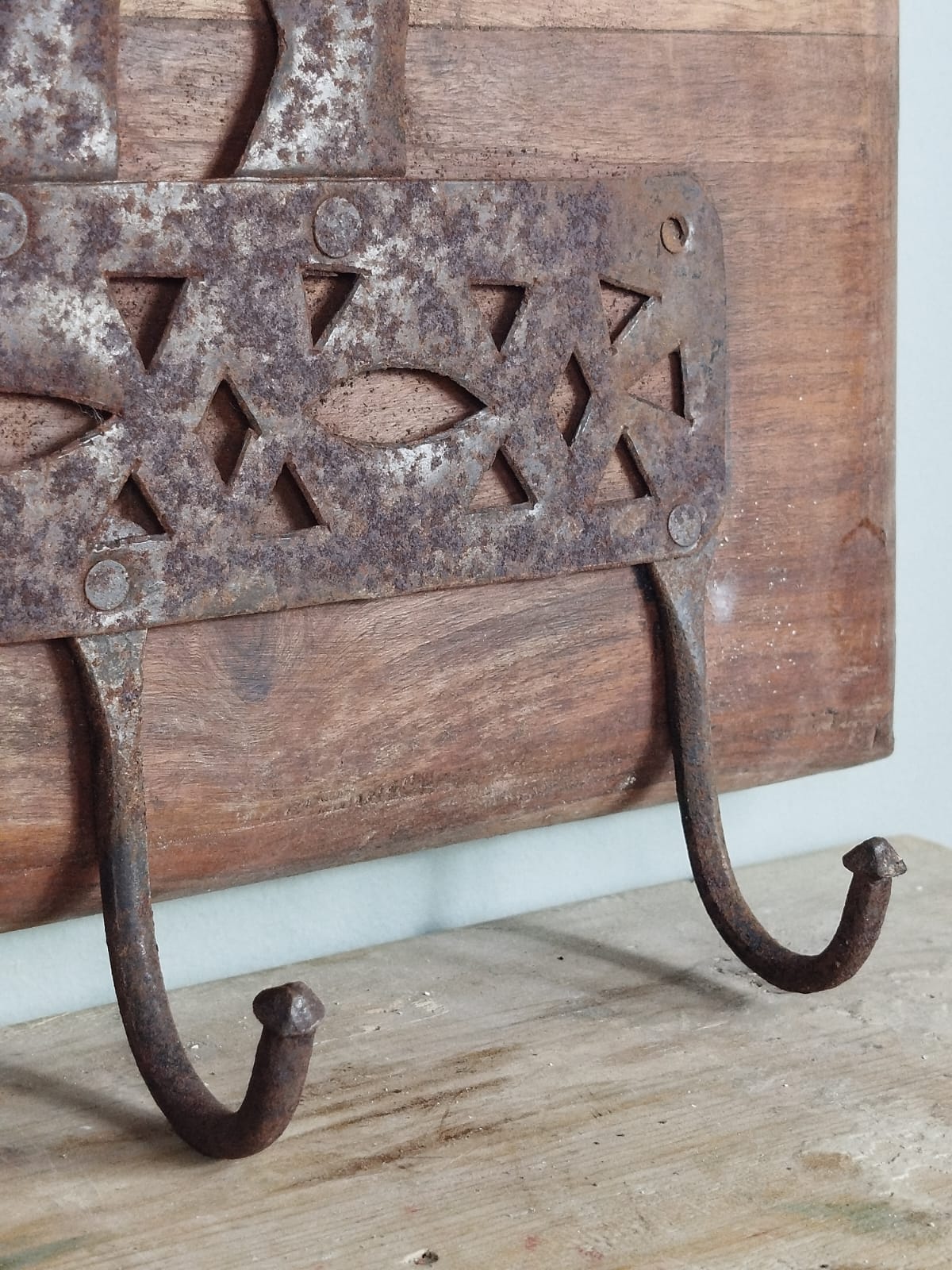 Un perchero de inspiración india que combina la calidez de la madera con la fuerza del metal trabajado. Una pieza práctica y con carácter étnico que aporta personalidad a cualquier entrada o dormitorio. Perfecto en recibidores con aire bohemio o combinado con muebles artesanales y textiles naturales.